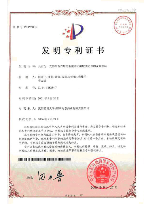 該產(chǎn)品正處于Ⅲ b臨床研究階段,已獲七項(xiàng)專利證書。 錦州九泰藥業(yè)與沈陽藥科大學(xué)合作開發(fā)的國(guó)家一類新藥鹽酸川丁...
