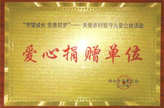 在“守望成長、慈善筑夢”關愛農(nóng)村留守兒童公益活動中,公司被錦州市慈善總會授予“愛心捐贈單位”榮譽稱號。