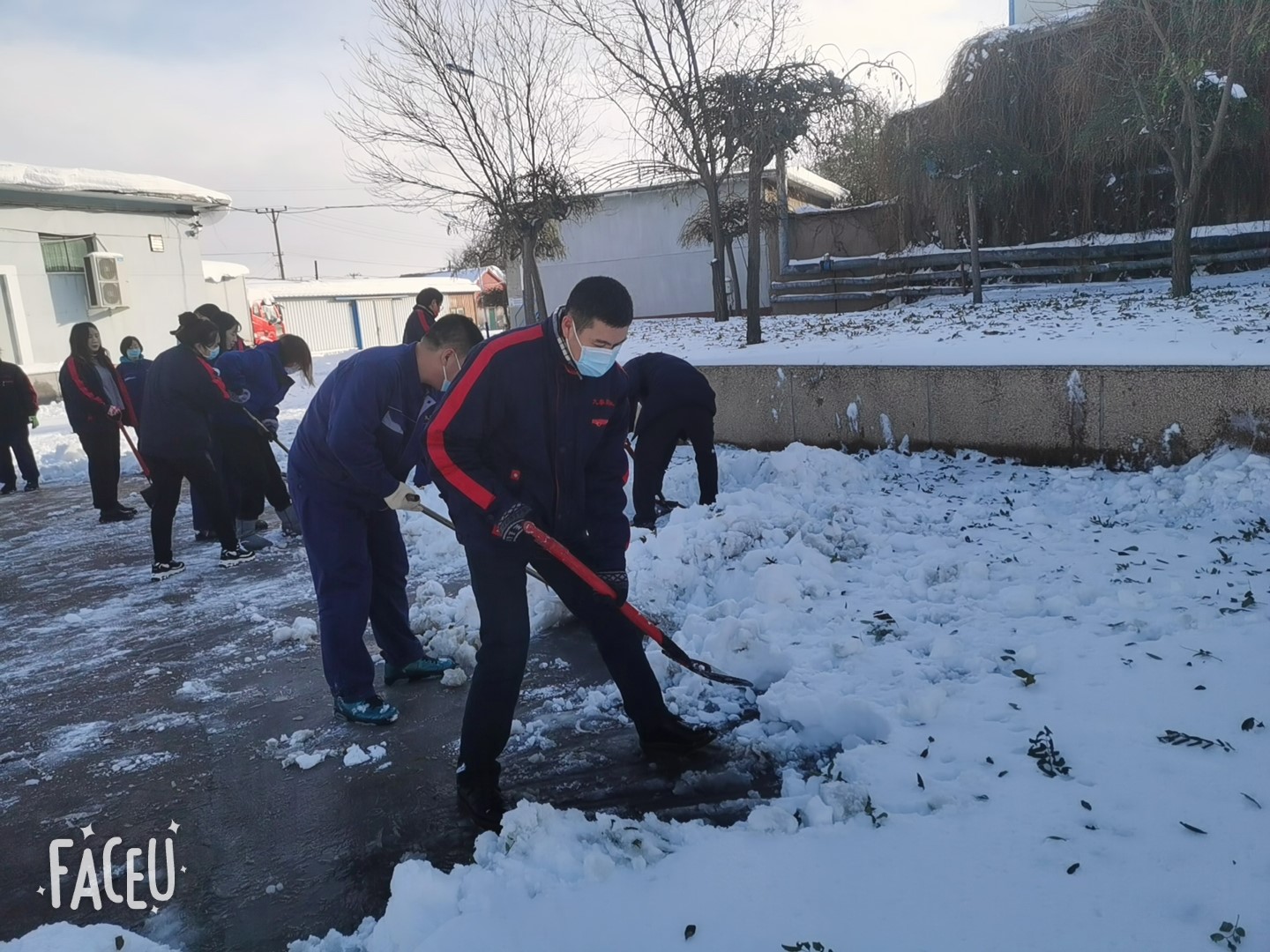 初雪是景,除雪是情。落雪無(wú)聲,洗盡鉛華。最美的不是下雪天,而是大家一起努力奮斗的身影。九泰人的辛勤汗水在寒冬揮灑,別樣的青春在雪中閃光。大家的歡聲笑語(yǔ)在白茫茫的雪地里漸漸消散,掃雪任務(wù)圓滿完成!