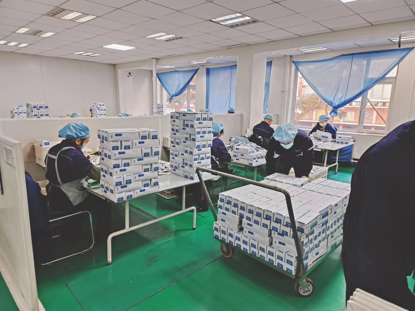包裝班的一線工人都擁有極佳的眼力、極快的反應(yīng)力、極敏捷的手速……那粒粒飽滿的鋁塑板,在傳送帶跳動的樣子不正是疫情結(jié)束的希望影子?!